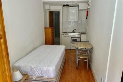 Tiny flat to rent for £832-a-month kitchen just inches from bed