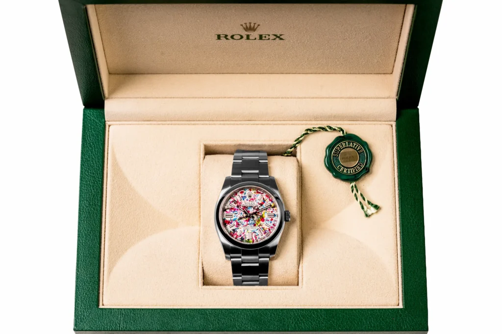 An artist turned a Rolex into abstract art by letting paint covered flies splatter the watch face, creating a one of a kind piece that stunned millions online.