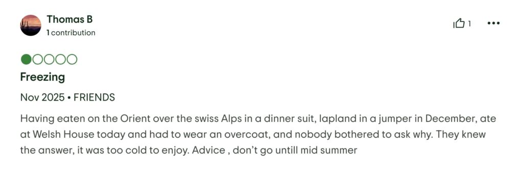 Another who also went in November alleged: “I don’t think I have ever been so cold inside a restaurant.